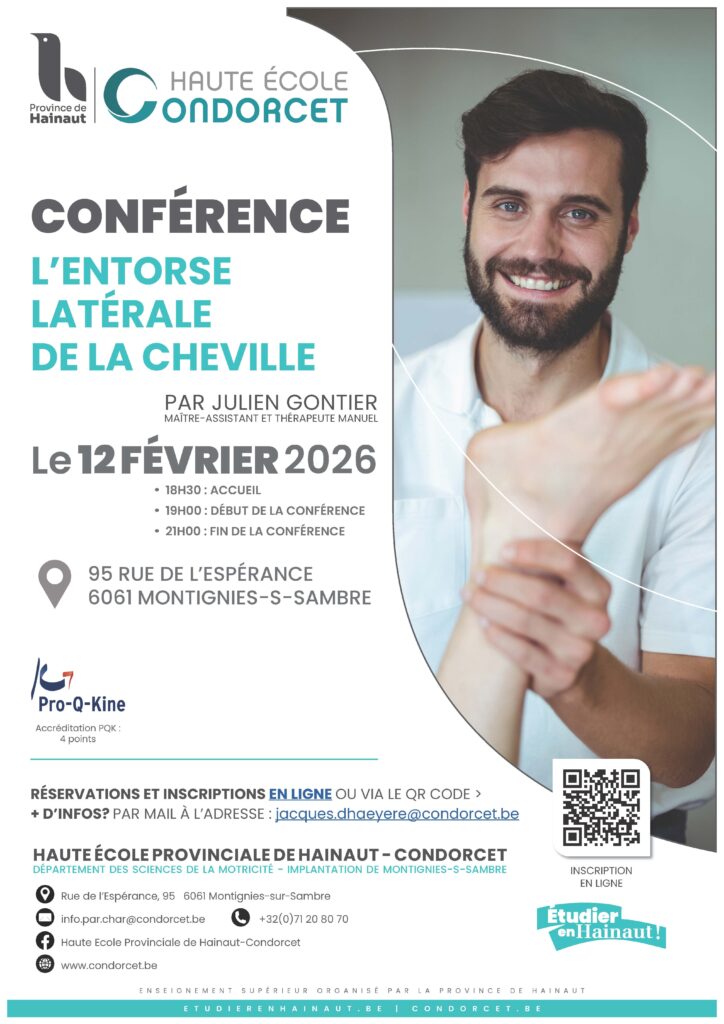 cette conférence s’adresse aux professionnels et étudiants du domaine des sciences de la motricité. Elle aura lieu le 12 février 2026 à la Haute École Provinciale de Hainaut – Condorcet, sur le site de Montignies-sur-Sambre.